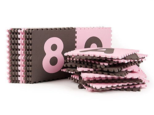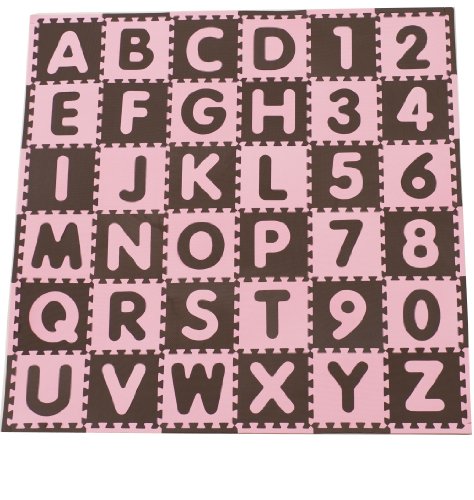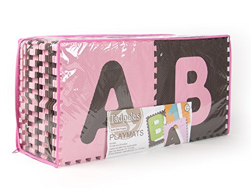 Using soft playful foam, Tadpoles ABC Floor Mats provide a fun, safe environment for your little one. Made of large interlocking foam puzzle pieces with removable letters and numbers, the mats create a soft base for the baby, and a great look for the room. Includes 36 Foam pieces with removable letters and numbers and 24 border pieces. Covers 36 square feet.Feature