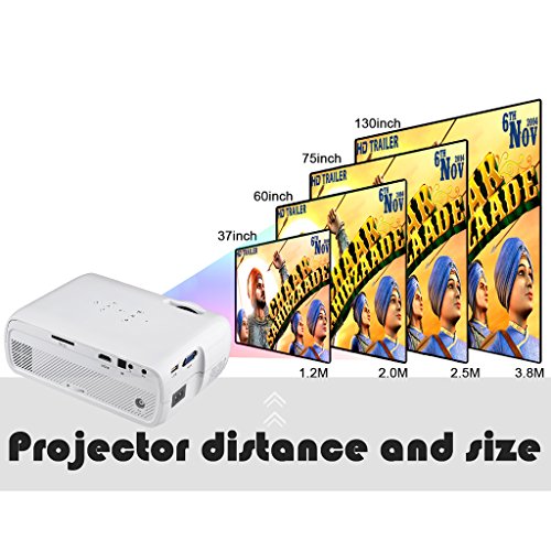 Distance: Manual focus adjusting, get picture from 37 to 130 inches at 1.2 to 3.8m. 20,000 hours LED lamp life.