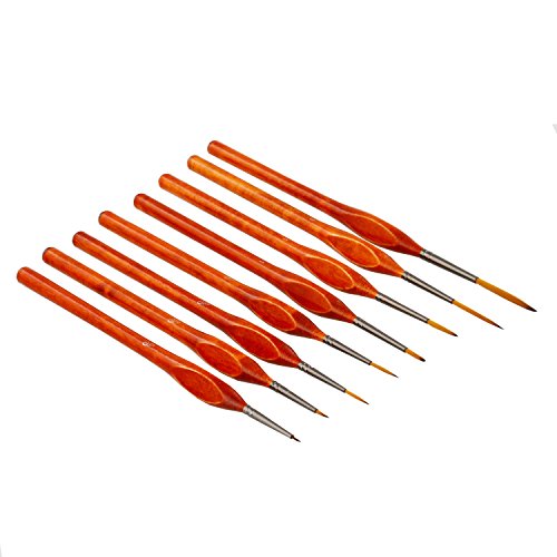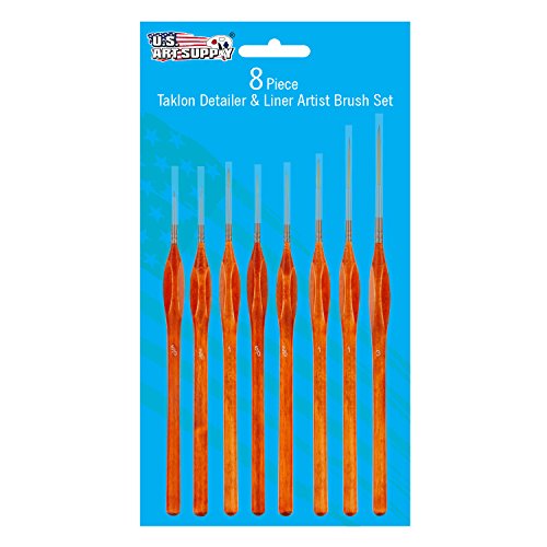 US Art Supply 8 Piece Taklon Detail and Liner Artist Brush Set with Wood Comfort Grip Handles - Art, Detailing, Acrylic, Oil, Watercolor