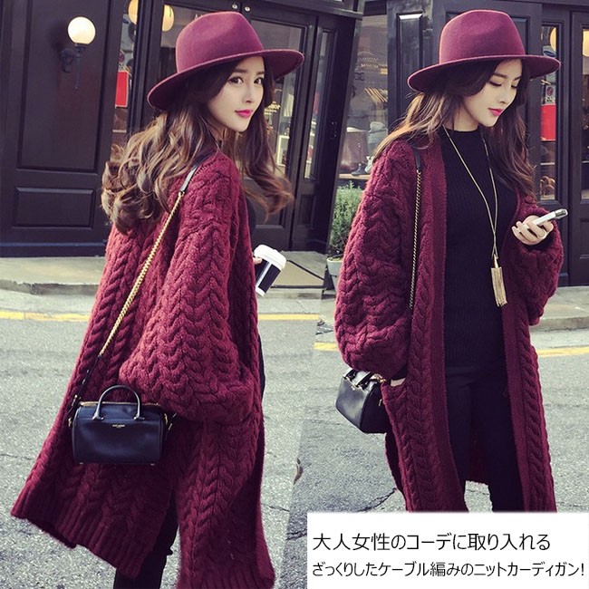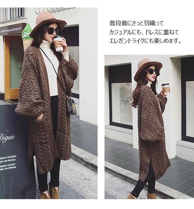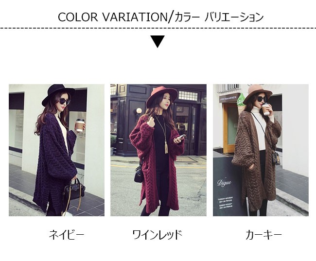| 商品名 | 秋冬アウター ニットカーディガン ニットアウター レディース 羽織り ケーブル編み 長袖 無地 ゆったり 暖かい カジュアル スリット入り ドルマンスリーブ 2017秋新作 |