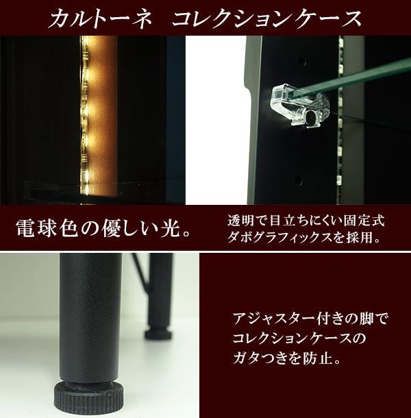 | 大切なコレクションが映える洗練されたデザインのケース。電球色の優しい光で、大切なコレクションをより魅力的にみせます。 |