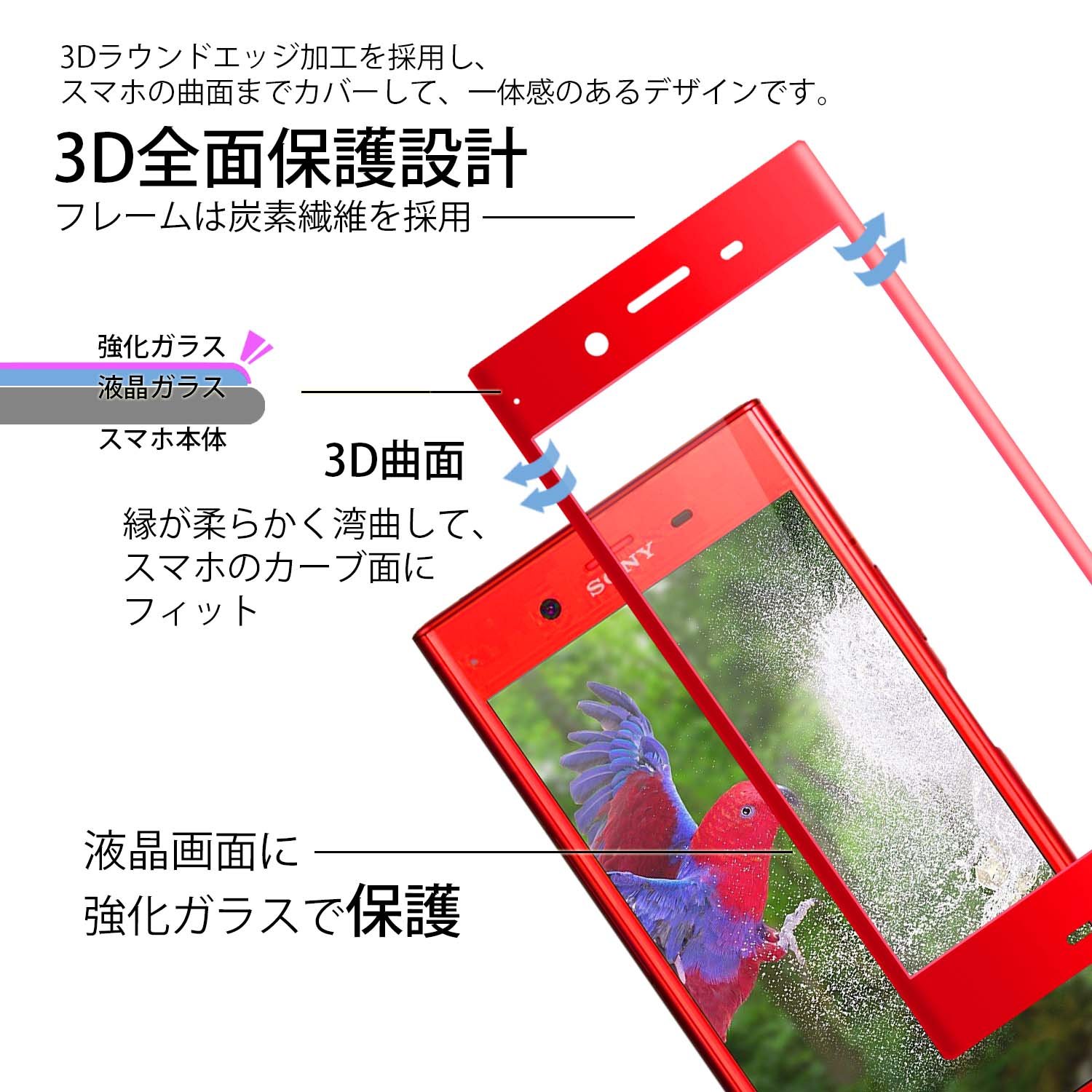 Xperia XZ Premium The curved surface treatment on the edge of the film allows full protection.