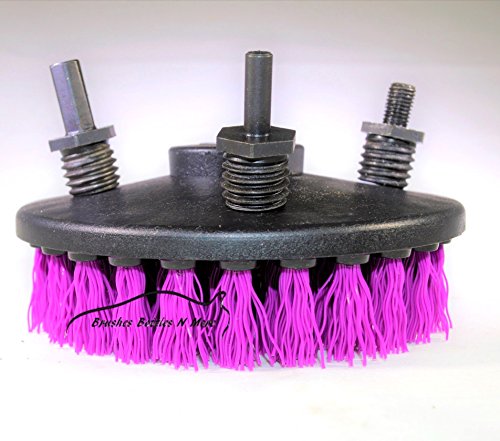 -. Feature : 2 different sized drill attachments / 1 dual action polisher attachment / 5" round / 1" bristle length / heavy duty