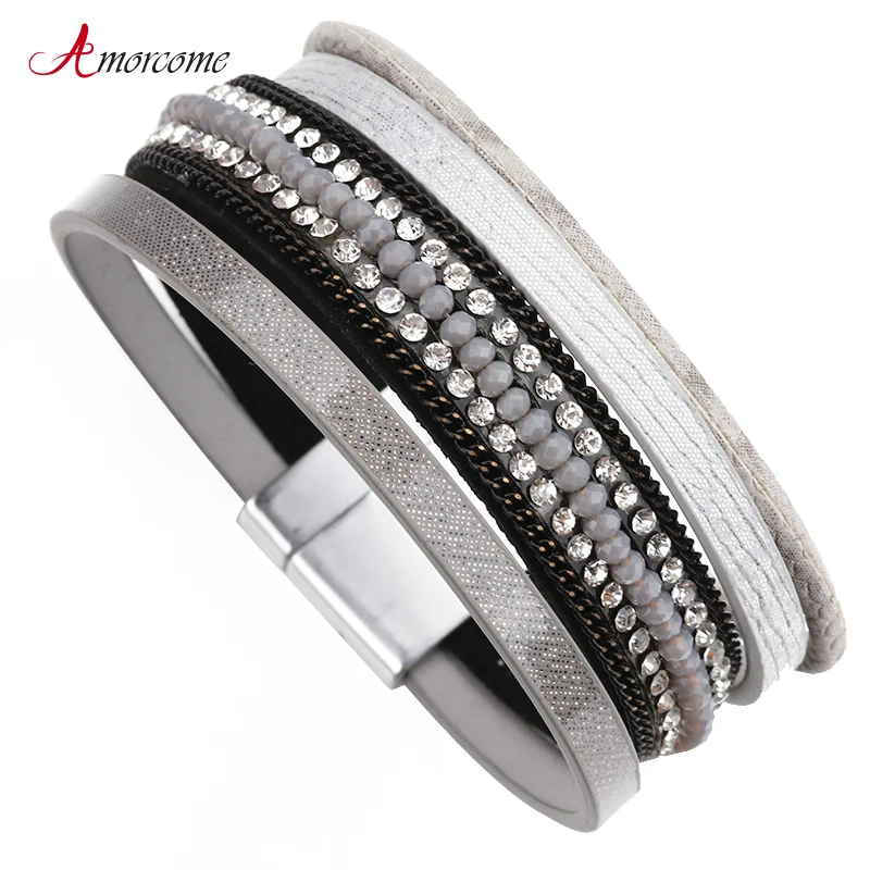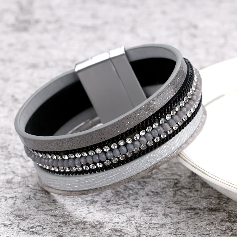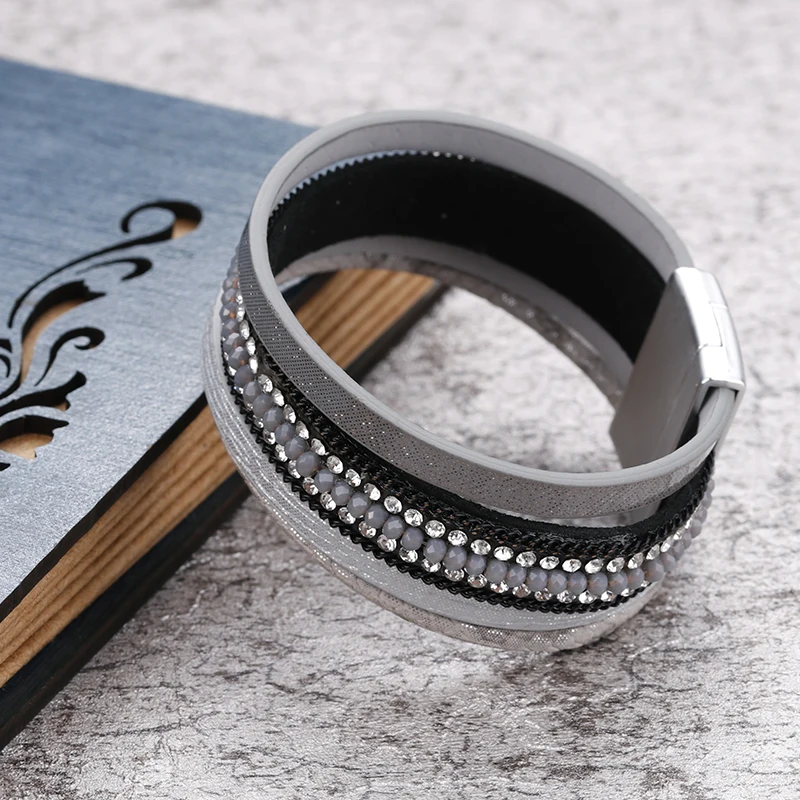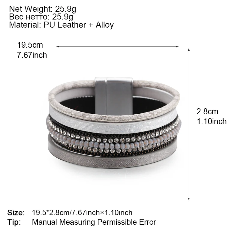 Color:Gray Leather Bracelet