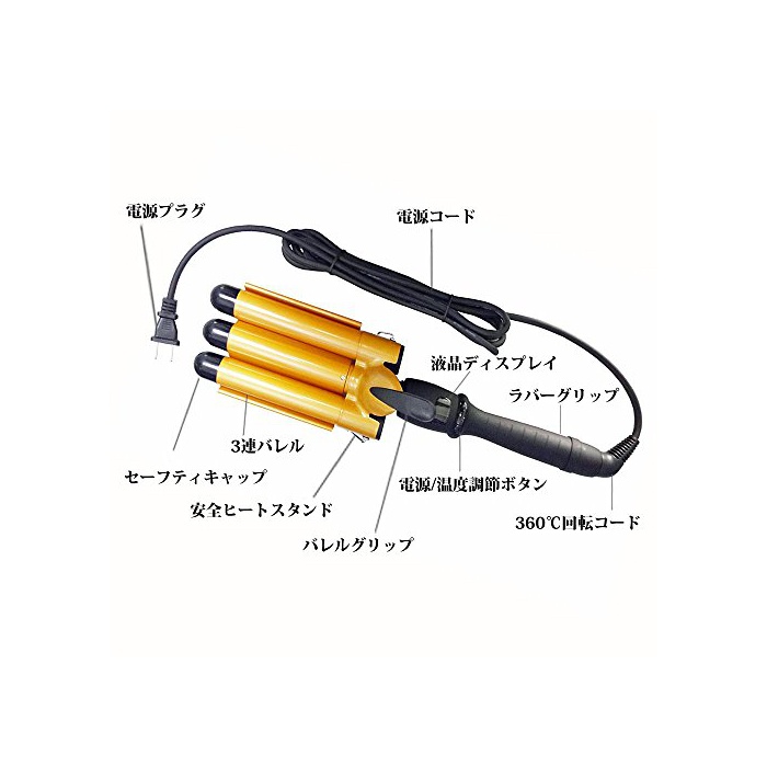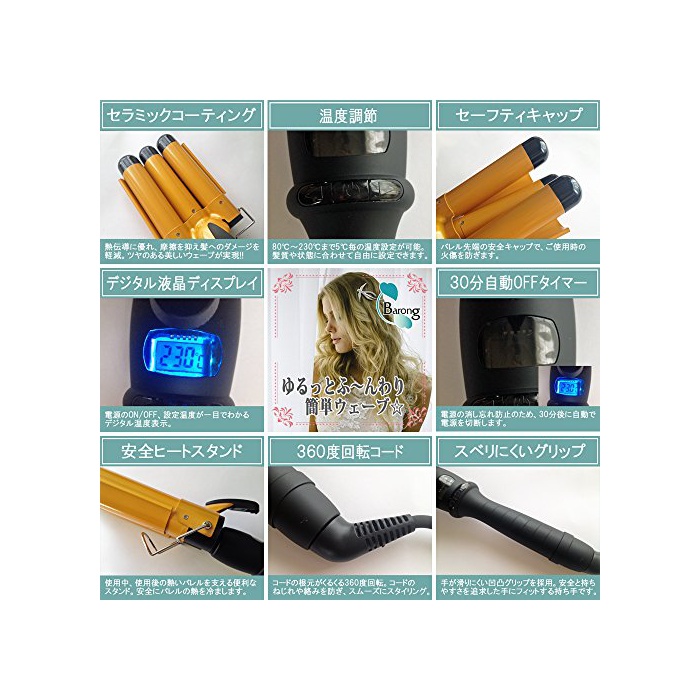 원본상품명: Barong プロ仕? Max230℃ セラミックコ?ディング 3連バレルのウェ?ブアイロン ヘアアイロン