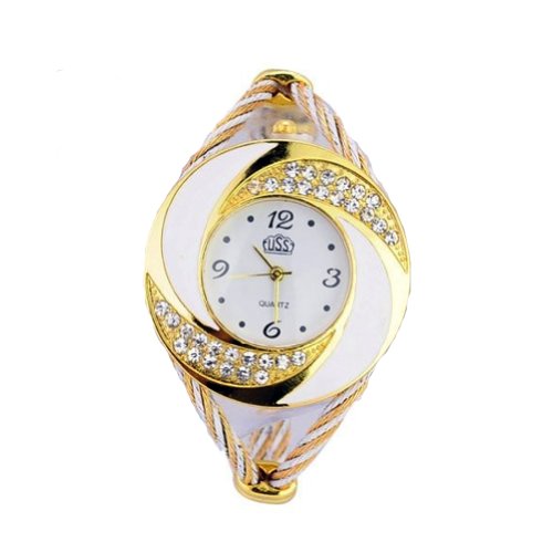 -. Title : Rhinestone Diamond Weave Women Dress Bracelet Wrist Watches White