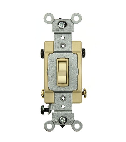 Leviton 54524-2I 20 Amp, 120/277 Volt, Toggle Framed 4-Way AC Quiet Switch, Commercial Grade, Grounding, Ivory
