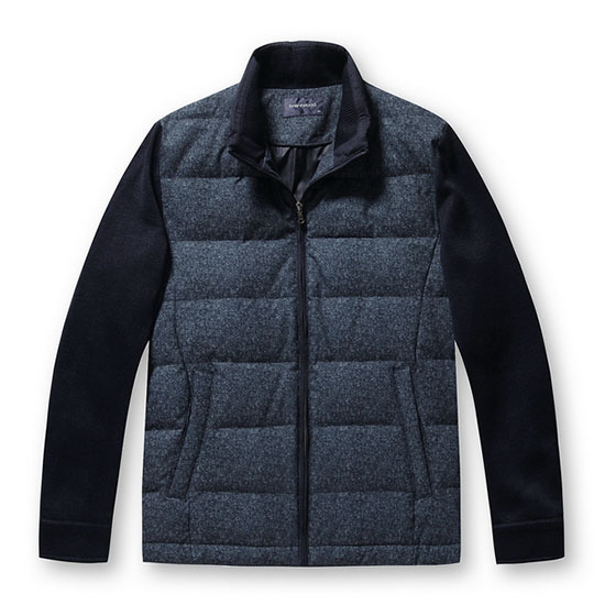 - 몸판은 잔잔한 프린트 퀼팅 조직으로 멋스러운 남성 점퍼.