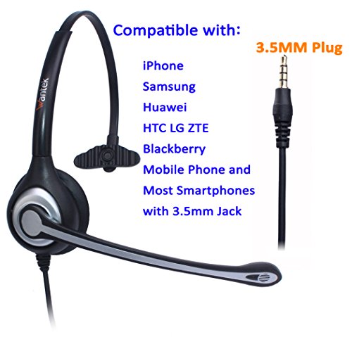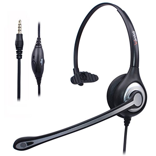 Wantek Cell Phone Headset Mono with Noise Canceling Mic and Adjustable Fit Headband for iPhone Samsung Huawei HTC LG ZTE Blackberry Mobile Phone and Smartphones with 3.5mm Jack(F600J35)