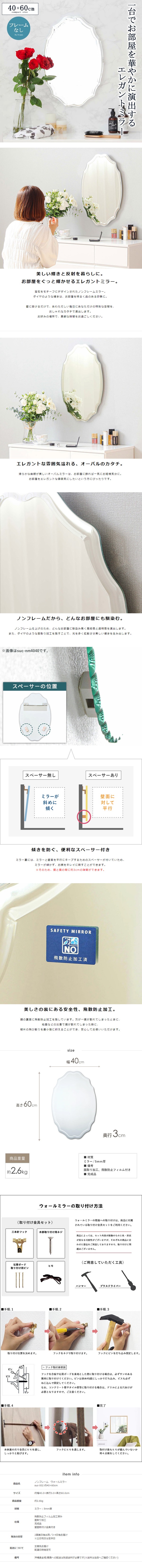 ●ノンフレームと面取り加工で立体感が際立つウォールミラー。