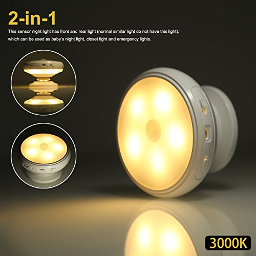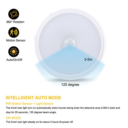 2-in-1 SENSOR LIGHT: Light sensor and motion sensor(the front or rear light will be on automatically in dark when detect human's movement,stays on for 20+ seconds), smart on and off night light