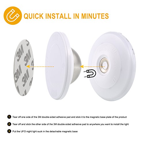 PORTABLE AND QUICK INSTALL: Motion sensor night light,small and portable, instantly install in any place with 3M double-sided adhesive pad and detachable magnetic base