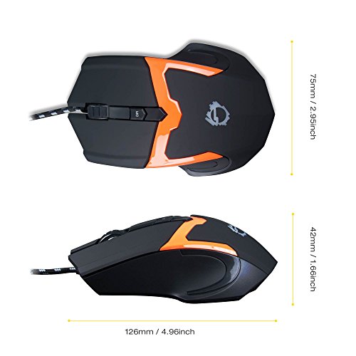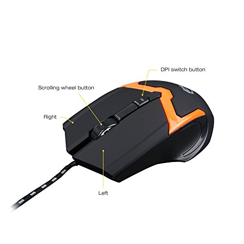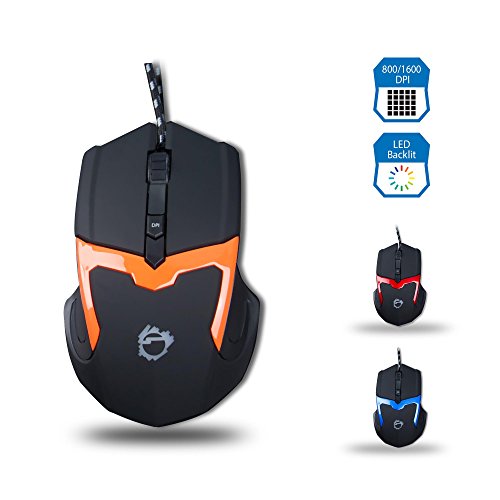 -. Feature : Wired USB mouse with high resolution optical sensor / Ergonomic design improves palm and wrist support. 4-button with scrolling wheel great for web, data browsing or gaming control / 2-level adjustable optical sensor supports 800 DPI or 1600 DPI resolution and provides smooth and precise movement / Woven braided USB cable enhances durability and shielding, integrated ferrite core minimizes signal interference and crosstalk / Built-in 7-color backlit LED with automatic alternating color display provides smooth ambient lighting experience