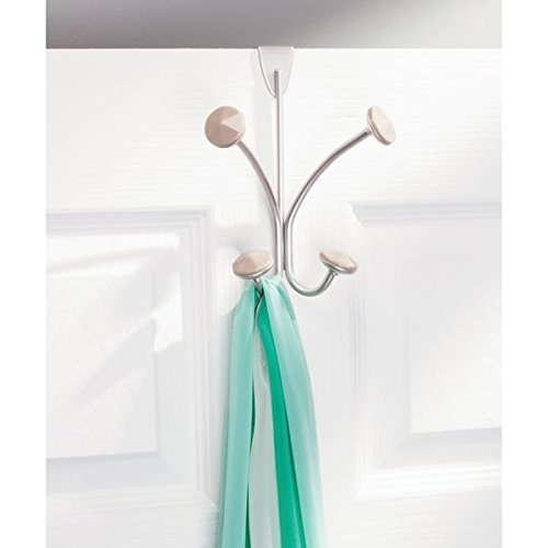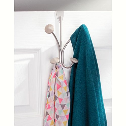 mDesign Over the Door Quad Storage Hook for Closet to Hold Towels, Robes, Scarves - Satin