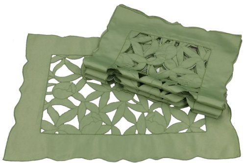 - Hand Rendered Cutwork with Intricate Tulips Embroidery