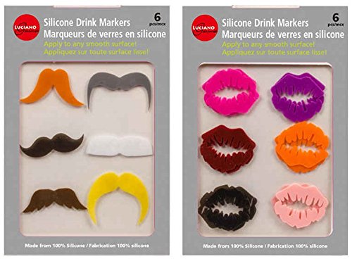 -. Feature : Made from 100% silicone. / Fun way to distinguish your wine and drink glass. / Set of 6 assorted mustache drink markers. / Set of 6 assorted lips drink markers. / Resuable, Easy to clean. Stick and re-stick to any smooth surface.