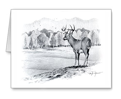 -. Feature : Whitetail Buck artwork by watercolor artist DJ Rogers. / Note card size is 4.25 x 5.5 inches / Matching white envelopes included. / Note cards are blank inside for your personal message. / Suitable for framing.