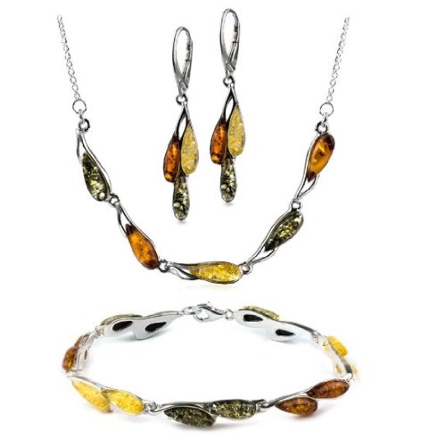 - Title : Sterling Silver Multicolor Amber Dreams Necklace 18 Inches Earrings Bracelet 7.5 Inches Set