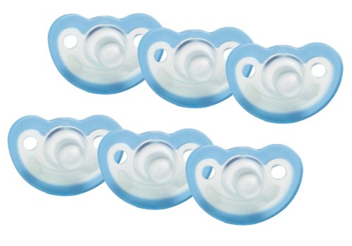 -. Feature : Natural shape, textured nipple babies love; Easy-to-hold loop shaped handle with teething nubs / Soft & flexible - no hard inner guard; Comfortable, curved shape fits baby's face / Safe 100% silicone - won't crack, break or peel / Two-tone baby bright colors / Phthalate-free, latex-free, BPA-free, DEHP-free; This includes: 6 Pacifiers - Vanilla Scented, Sealed in a polybag