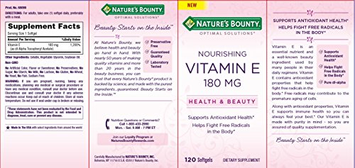 Vitamin E is an essential nutrient crucial for good health that also supports immune function. Vitamin E Contains antioxidant properties that help fight free radicals in the body. Free radicals may contribute to the premature aging of cells. Our Vitamin E is made with purity in mind - so you are assured of quality supplementation.Feature