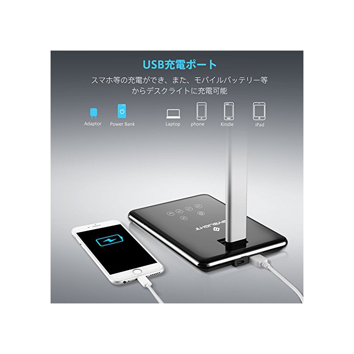 원본상품명: BYBLIGHT LEDデスクライト 面光目に優しい【無段階調光4段階調色】 センサ式 USB充電ポト搭載電スタンド 書や勉等に最適