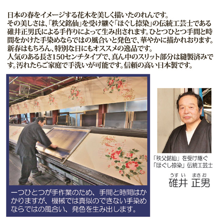 ●日本の春をイメージする花木を美しく描いたのれんです。