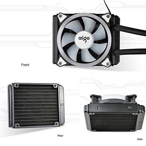 Liquid CPU Cooler, Aigo All-In-One Water Cooling System High Performance Adjustable 120mm PWM Fan with White LED Light for Intel/AMD, AM4 Available