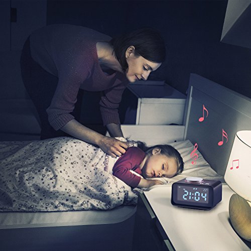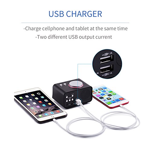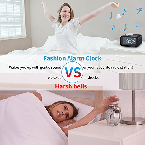 【DUAl ALARM CLOCK】:With dual alarm clock, the alarm clock can set up two different wake up time with ringtone or Radio. Snooze function afford you extra 10 minutes of sleep. Support 3 * AAA battery(not included) to ensures memory of time in case power failure.