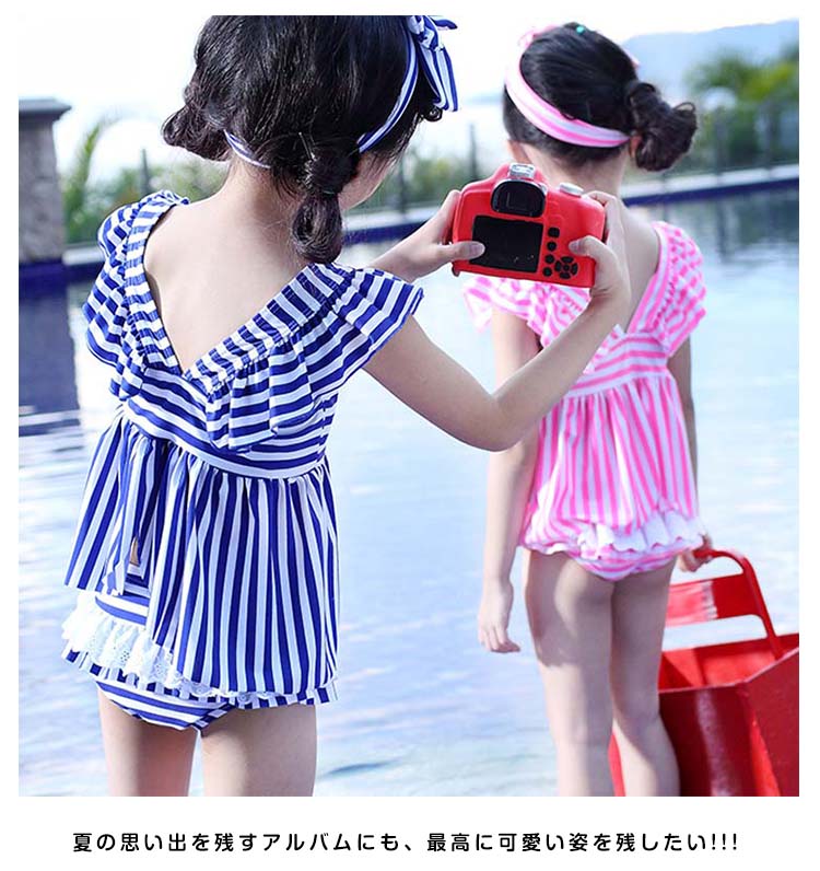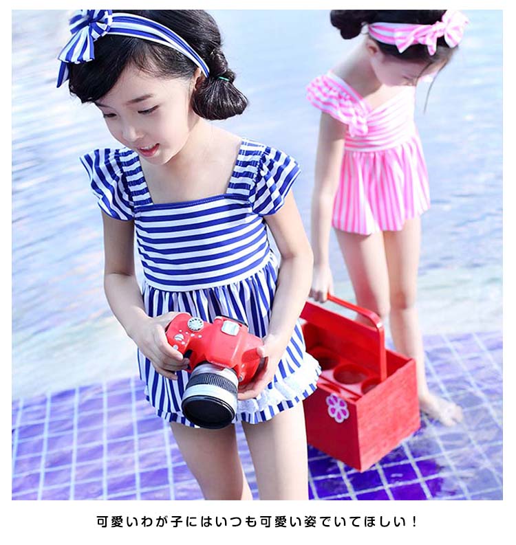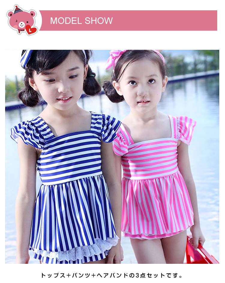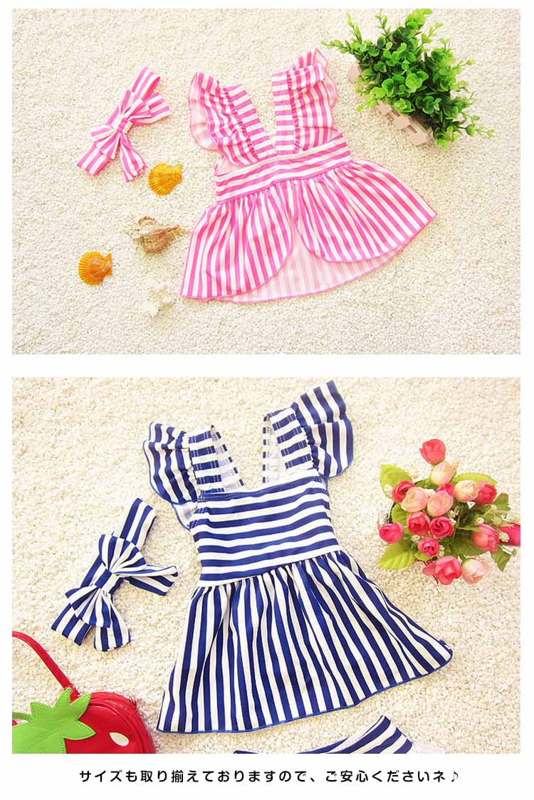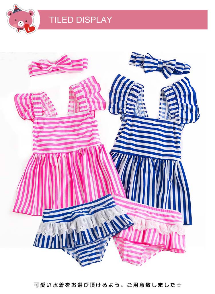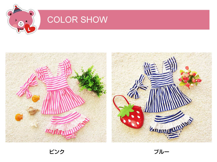 | 可愛いストライプ柄女の子セパレート水着♪トップス+パンツ+ヘアバンドの3点セットです。可愛いわが子にはいつも可愛い姿でいてほしい!夏の思い出を残すアルバムにも、最高に可愛い姿を残したい!!!可愛い水着をお選び頂けるよう、ご用意致しました☆サイズも取り揃えておりますので、ご安心くださいネ♪ | |