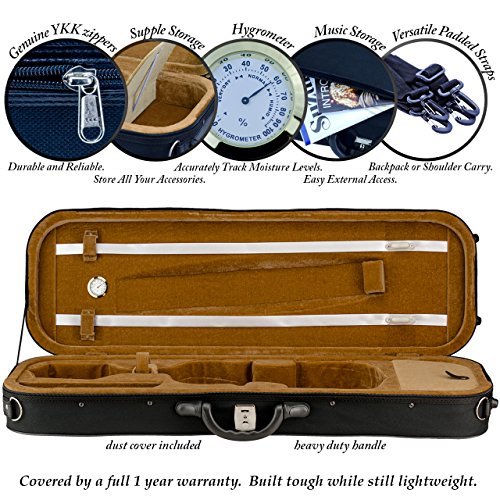 -. Feature : Lightweight high-density foam shell / Music Pocket / Plush lining / 2 bow holders / Adjustable shoulder straps