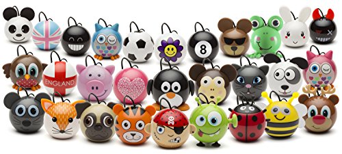 Introducing the KitSound Mini Buddies Adorable and portable, what the KS Mini Buddy speakers lack in size, they make up for in volume. Big Sound 'Less is more'; 'Don't judge a book by its cover'; 'Good things come in small packages'. There are many sayings we could use to describe the KS Mini Buddies, but for the sake of simplicity we'll just say they're surprisingly loud. Bigger sound On its own a Mini Buddy sounds impressive, but if you want even more volume, you can connect two or more of them together for increased impact. And with the Mini Buddies coming in a variety of cute designs, it's a good excuse to collect the whole family. Ultra portable Just because a Mini Buddy boasts big sound, it doesn't mean the speaker itself has to be big. Measuring around 50 mm wide, 55 mm high and 48 mm across, they're ultra-portable and even come with a key ring attachment, so you can hear your music out loud wherever you are. Easy to Use Simple to use, you just plug it into your mobile, tablet, PC or music device using the 3.5 mm headphone jack and turn it on. Charging the built-in Li-ion battery can be done by simply plugging the supplied USB cable into a PC, laptop, USB mains charger or USB car charger. About KitSound We are craftspeople. We are musicians. We are KitSound and we all commit ourselves to achieving one shared goal: Bringing people closer to their music. By understanding music we stay true to its craft. Pure, rich, incredible sound. We settle for nothing less. Specifications: Frequency response: 100 Hz -20 kHz Driver size: 36 mm S/N: 85 dB Output: 2 W RMS @ 4 ohms Cable length: 8.5 cm.