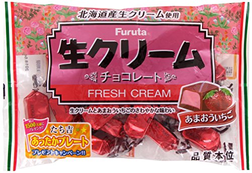 原材料:砂糖、植物油脂、カカオマス、全粉乳、乳糖、砂糖粉乳調製品(砂糖、全粉乳、ココアバター)、ココアバター、乳等を主要原料とする食品(生クリーム、脱脂粉乳、乳糖、砂糖)、苺パウダー、乳化剤、酸味料、着色料(赤ビート、紅麹)、香料、糊料(ペクチン)、(原材料の一部に大豆を含む)