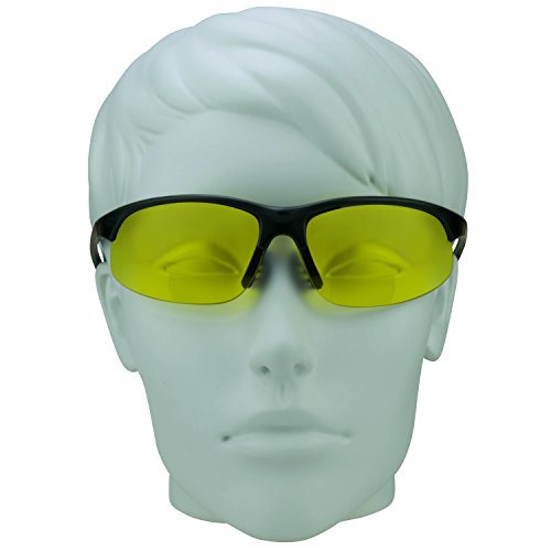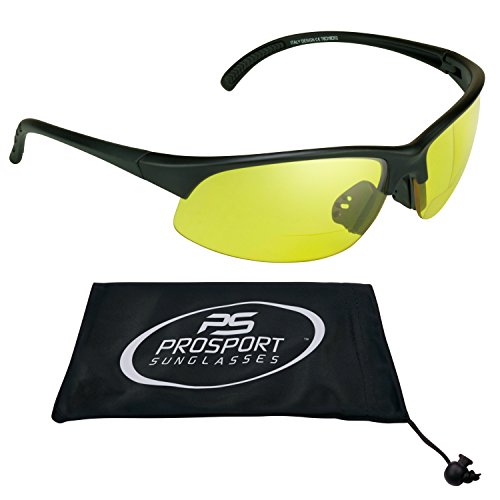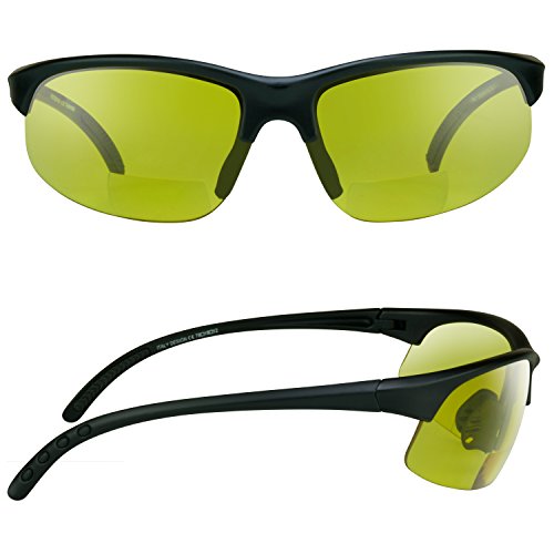 Product Description Pheaton yellow tinted bifocal glasses were made for the avid outdoorsman! Sporty, perfect wraparound style is light weight and comfortable. Now you can play golf, tennis, baseball, run, cycle, hike, drive or ride motorcycle and be able to read maps, scorecards, menus, GPS or smart phone without switching glasses! Yellow glasses also known as night vision glasses are popular for night riding and night driving since yellow tint can reduce headlight halo effect at night. Yellow lens glasses are also great for cloudy days and raining days, too. Fits Medium to Large heads. Free Microfiber cleaning case included for each pair. 0