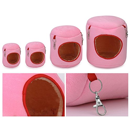 ?:Description: ?:100% Brand New, High Quality. ?:Plush warm hammock hanging bed for little pet rat bed small pet cage house cute ?:Bed with with snaps, can easily be firmly firmly in a cage, together use with quilt, to make pet live in warming and comfortable ?:Size: About S:9*9*10CM,M:12*12*10CM,L:16*16*16CM,XL:21*21*21CM ?:Material: Cotton Velvet ?:Color: Pink,blue ?:Applicable animals: hamsters, parrots, Dutch pigs, kittens, chinchillas and so on. ?:Package:1 x Pet Warm Bed Hammock Winter Toys Hamster Squirrel Cage House Hanging Nest 0