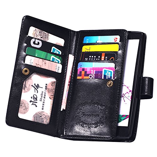 Combination of wallet and cell phone case. Features 9 card slots and 2 inner pockets, which provides enough space for your credit cards and pocket money.