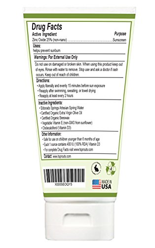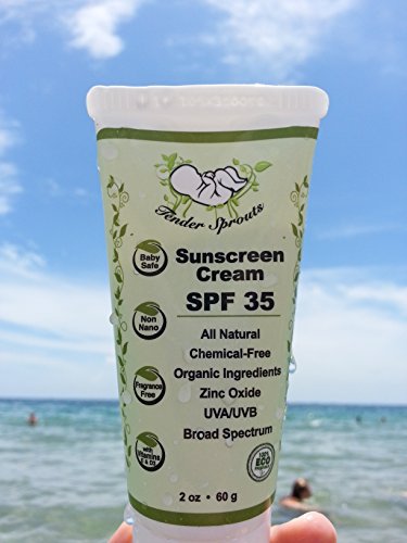 Tender Sprouts Organic Zinc-Oxide Baby Sunscreen. SPF 35. All-Natural, Chemical-Free Cream for Sensitive Skin. Broad Spectrum UVA/UVB. 2 oz 60 g.