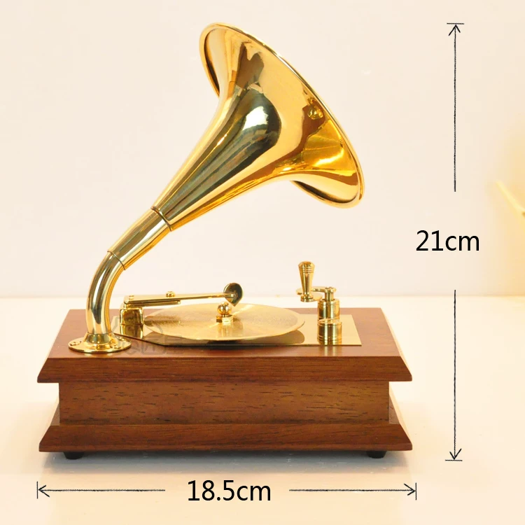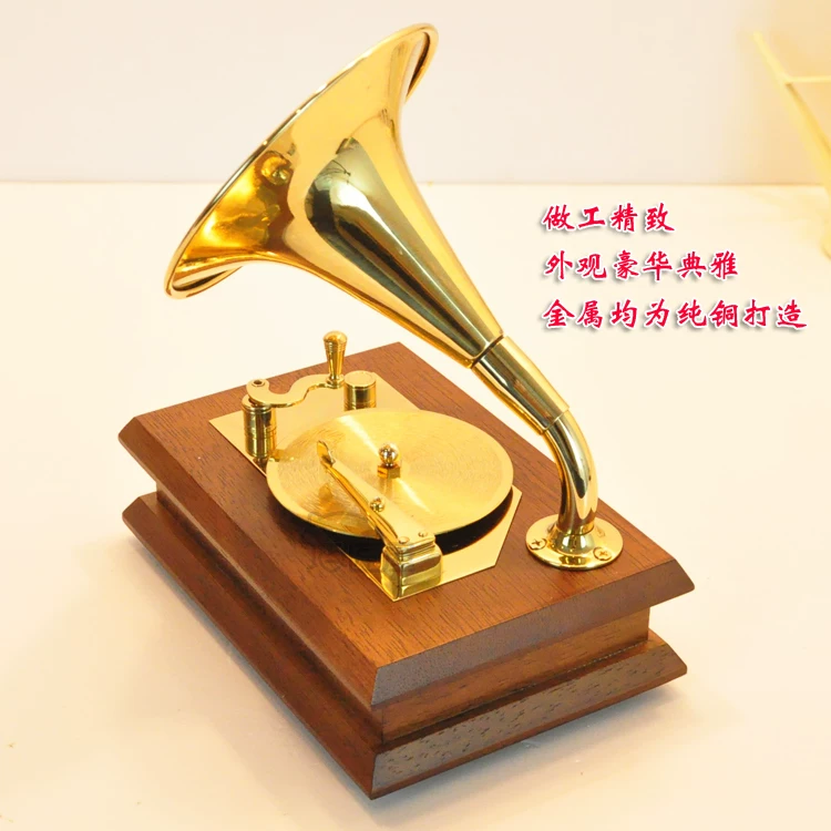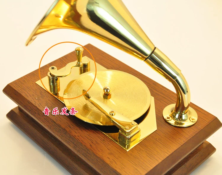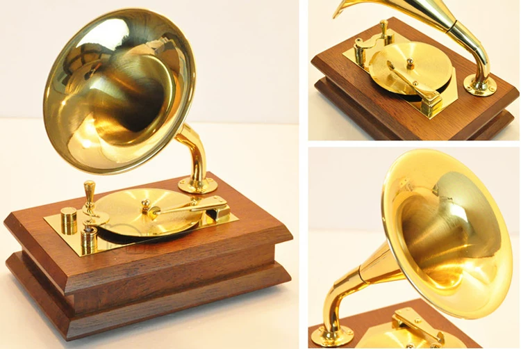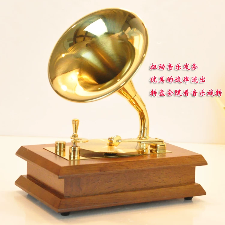[Product Description] Craftsman House New Luxury gilded gramophone music box, this product is made ​​in Taiwan and exported to Europe and America. All products are copper metal build, fine grinding. Effects can be comparable with gold plating. Every detail and parts excellence, luxury and elegant appearance, exquisite luxury, great texture! Produced by Nanyang cypress wood base, the surface is smooth, clear texture ... music clockwork in the "LP" next twist clockwork, "album" will rotate with the music ...
