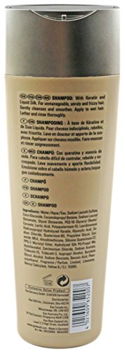 -. Feature : For unmanageable, unruly and frizzy hair. / Gently cleanses and smoothes. / With Keratin and Liquid Silk.