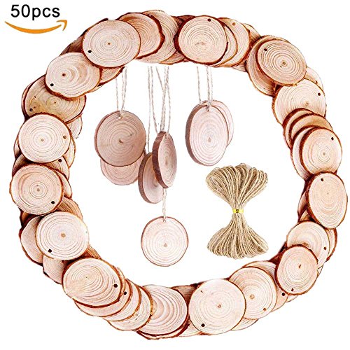 - Package contains 50 pcs pine tree discs and 33 Feet Natrual Jute Twine