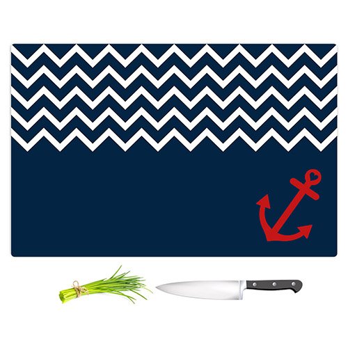 DiaNoche Designs CB-OrganicSatAnchorChevRedBlue2 Organic Saturation-Anchor Chevron Red Blue Cutting Boards from, Large 15" x 11"