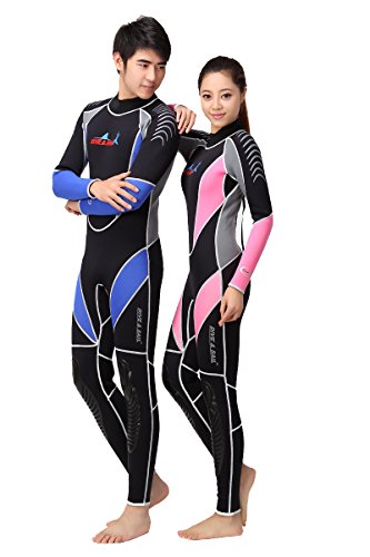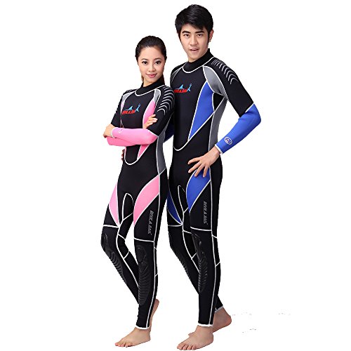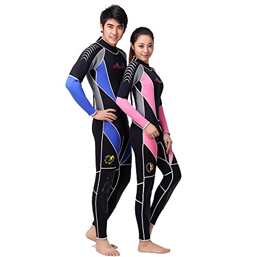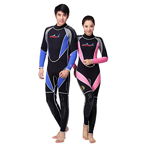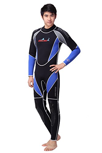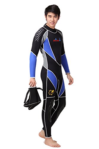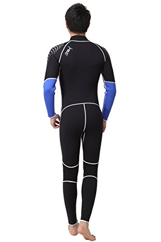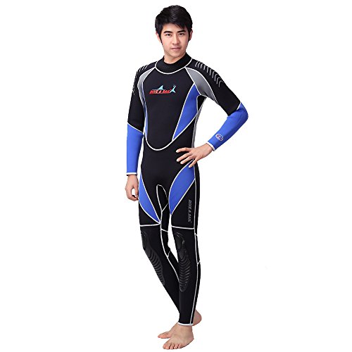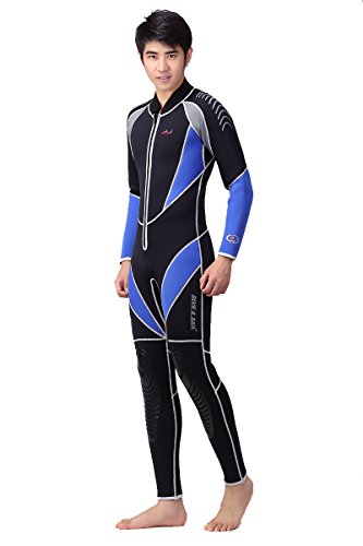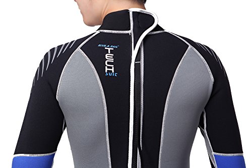 Wetsuit man 3mm scuba diving suit neoprene full body rash guard for diver snorkeling swimming race sailing (Blue, XL)