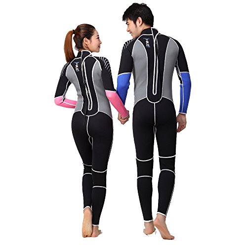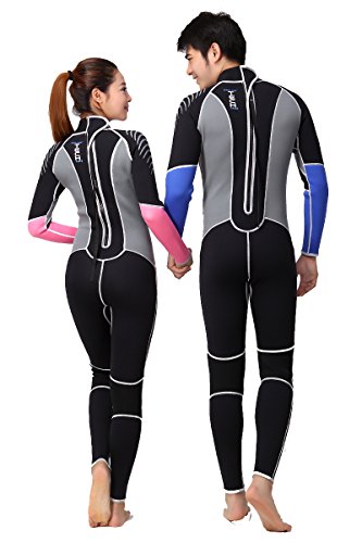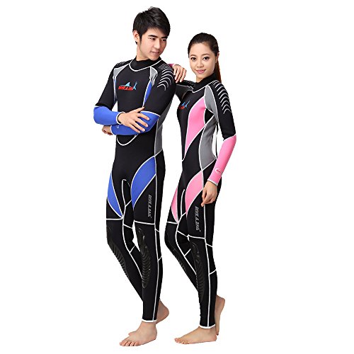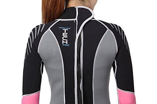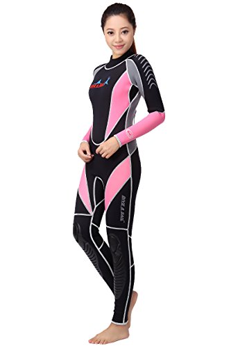 Wetsuit woman 3mm scuba diving suit neoprene full body rash guard for diver snorkeling swimming race sailing(Pink, L)
