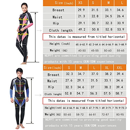 Wetsuit man 3mm scuba diving suit neoprene full body rash guard for diver snorkeling swimming race sailing (Blue, XXL)