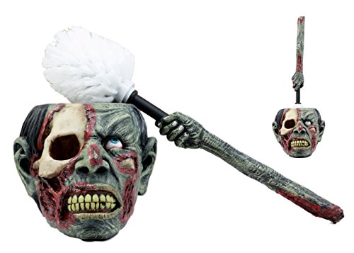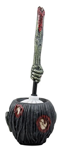 Ebros Gift Walking Dead Zombie Hand Toilet Bowl Brush & Zombie Head Toilet Bowl Brush Holder Set Decorative Figurine 14"H
