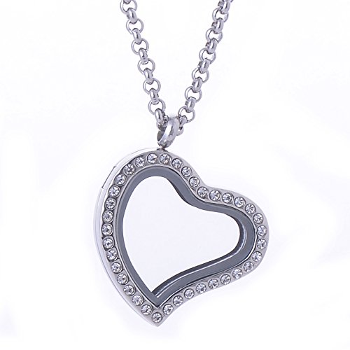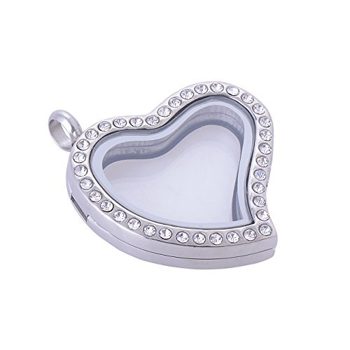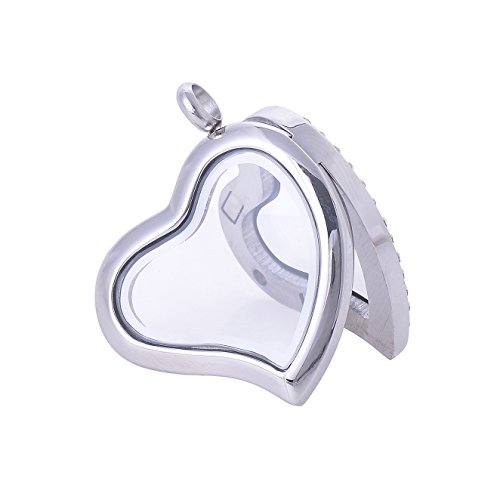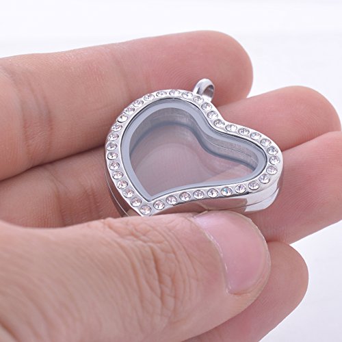 -. Feature : Material:Stainless Steel. / Pendant Size:29mm(1.14")x28mm(1.1") / Necklace Chain:about 20 inches length / Clear locket open to put charms,photos of your choices,Magnetic Closure / Package:Velvet bags P.R.Inted Michley