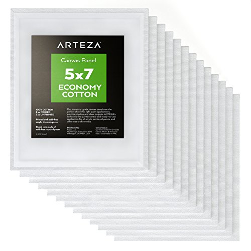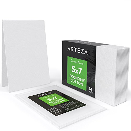 Arteza Painting Canvas Panels, 5x7", Set of 14, Primed White, 100% Cotton with Recycled Board Core, For Acrylic, Oil, & Other Wet or Dry Art Media, For Artists, Hobby Painters, & Kids