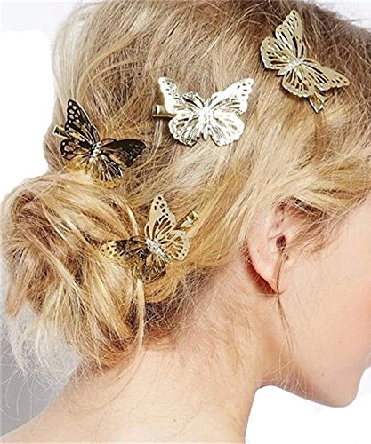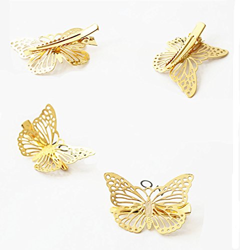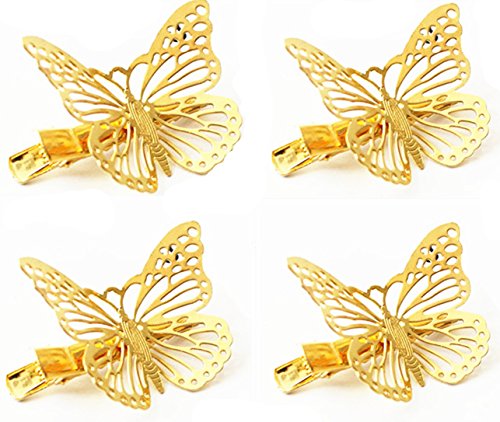 QTMY Pack of 4 Golden Hollow Metal Butterfly Hair Clip Hair Accessories