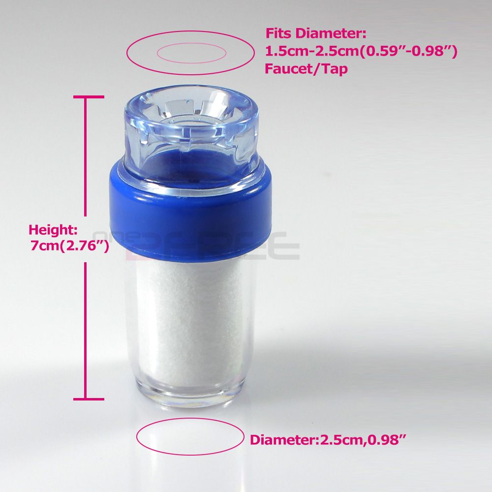 Lifestyle & Fashion!High Quality! A must item for home&kitchen&office uses Compact,environmental&easy to install Double filtration, more cleaner. Makes water pure and tasty&bland,avoiding splashing Delicate appearance, easy to install and convenient to clean. Enjoy clean water with the help of this health tap water purifier. Feature: * The Faucet Purifier can be mounted to your faucet easily. * Treatment by internal organizational level to achieve the rapid purification of layered filtering effect. * Immediately after using this product can reduce and control the faucet water flow, to prevent splashes and save water. * Fit most faucet/tap. * It can remove rusts, parasites, contaminants, worms, residual chlorine, algae, heavy metal ions, dirt, organic pollutants, unpleasant tastes, cryptosporidium. * Top Diameter: 3cm(1.18") * Bottom Diameter:2.5cm(0.98") * Cartridge Height: 7.0cm(2.76") * Water Inlet Diameter: 1.5cm-2.5cm(0.59"-0.98") * Water Outlet Diameter: 1.5cm(0.59") * Material: polypropylene. * Weight: 30g. Q&A: * How long need to replace the filter? Based on the quality of water, there is no specific time, but when filter turn brown or dark , that mean you need to replace the filter.