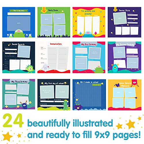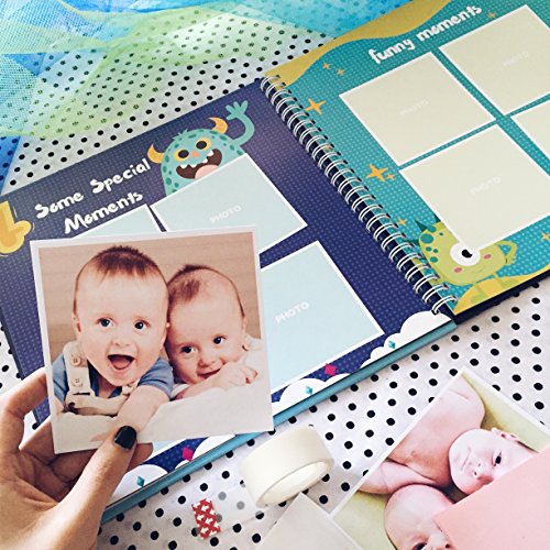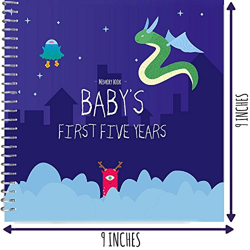 Baby Boy's First Five Years Memory Book | 12 Stickers Included | 5 year album with stickers and frames to add your pictures in a gorgeous way |...