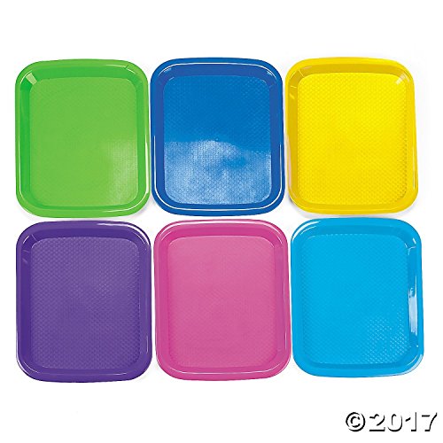 - Includes 6 plastic trays in assorted colors